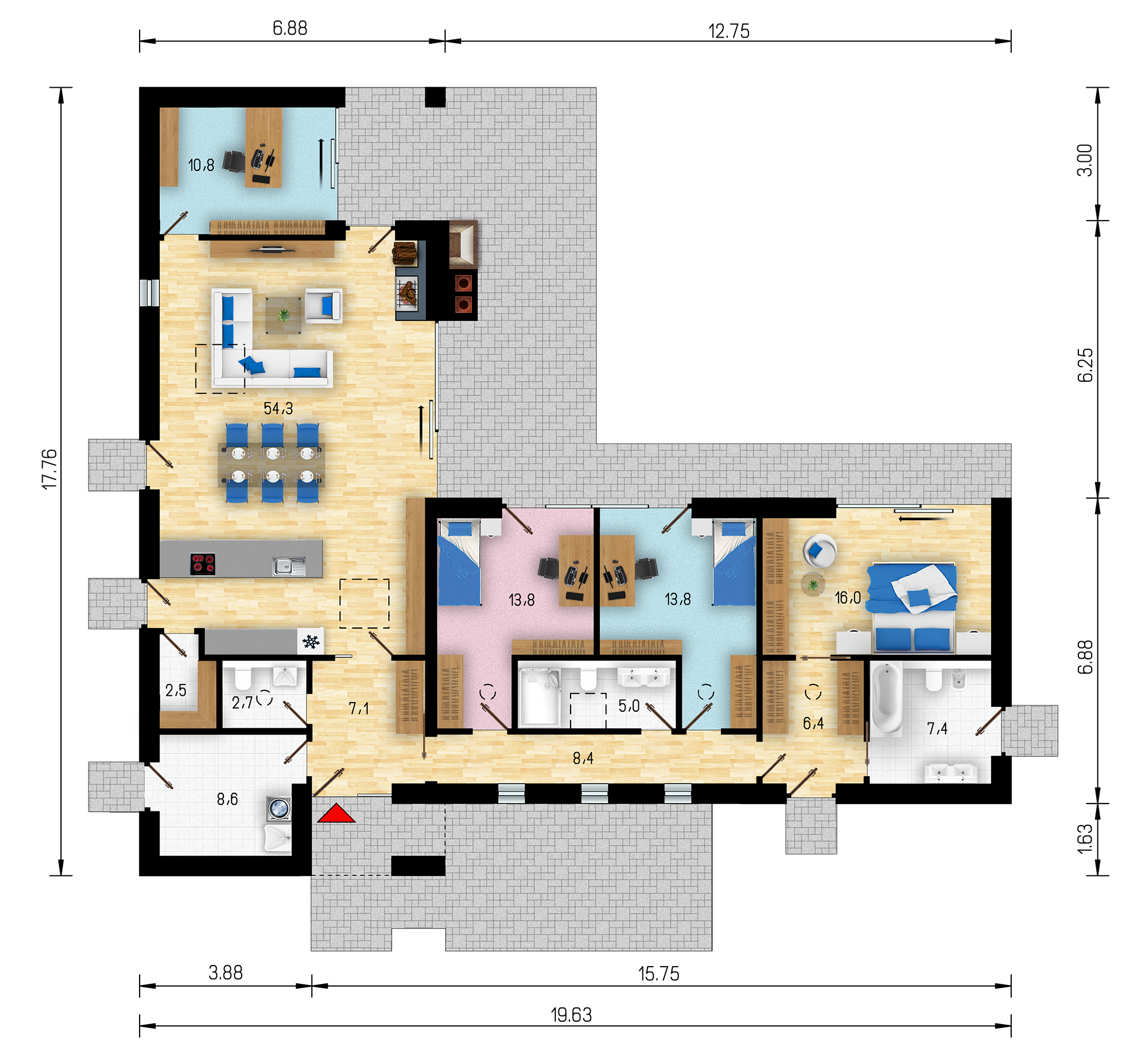 161m² podlahové plochy